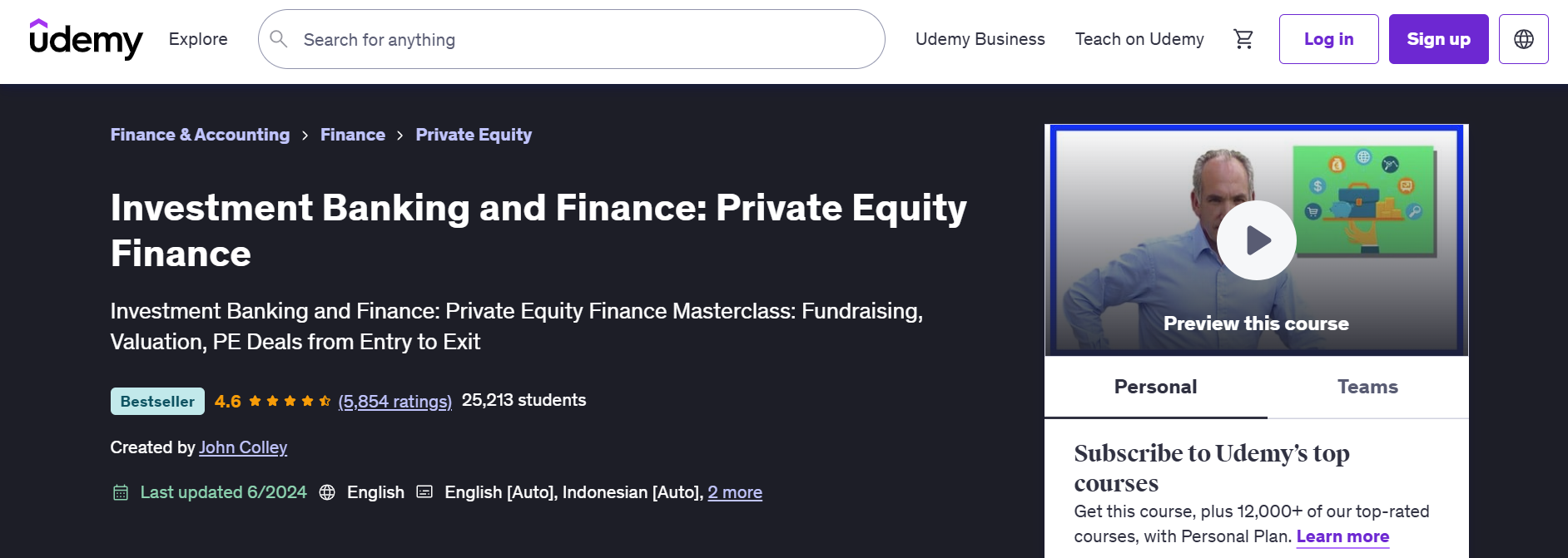 The course covers all the essentials for anyone getting into Private Equity.
